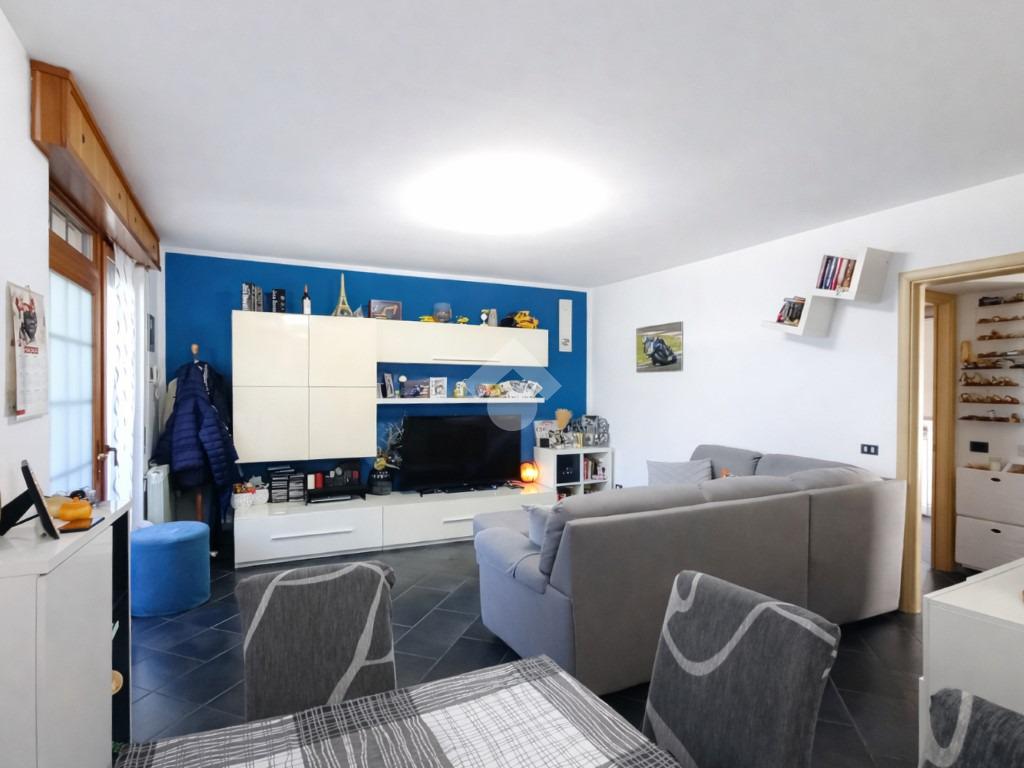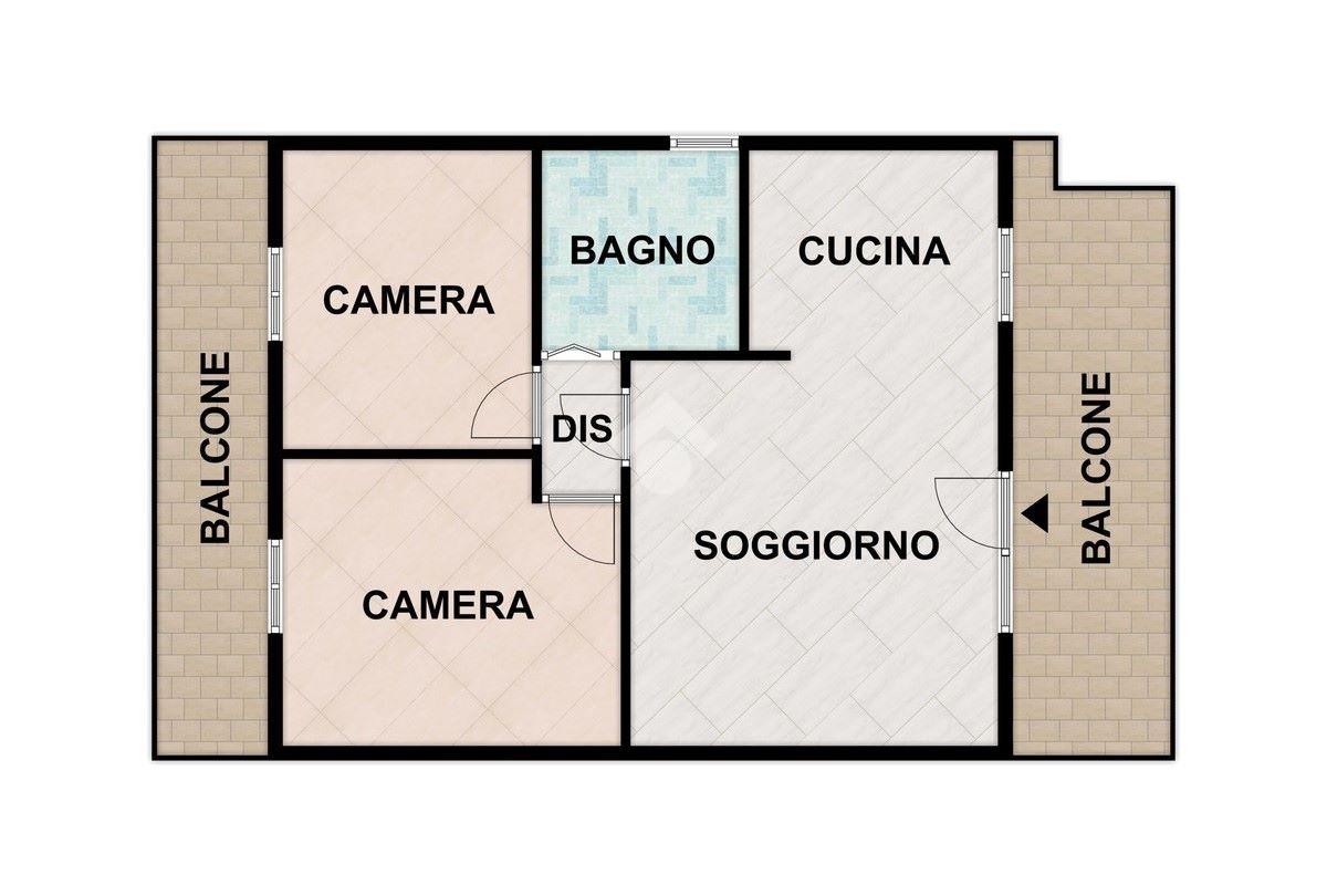 All'interno si compone di un ampio soggiorno con cucina a vista, un pratico disimpegno di accesso alla zona notte, due spaziose camere da letto ed un bagno finestrato con box doccia in cristallo.