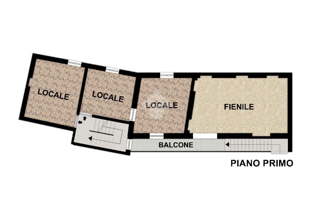 I due piani abitativi sono composti complessivamente da sette vani oltre ripostigli e portico, tra cui l’antica stalla con tipiche mangiatoie (al piano terra) ed un caratteristico fienile a tutta altezza (al piano superiore), dotato di muri in pietra e comoda scala esterna con balcone d’ingresso.