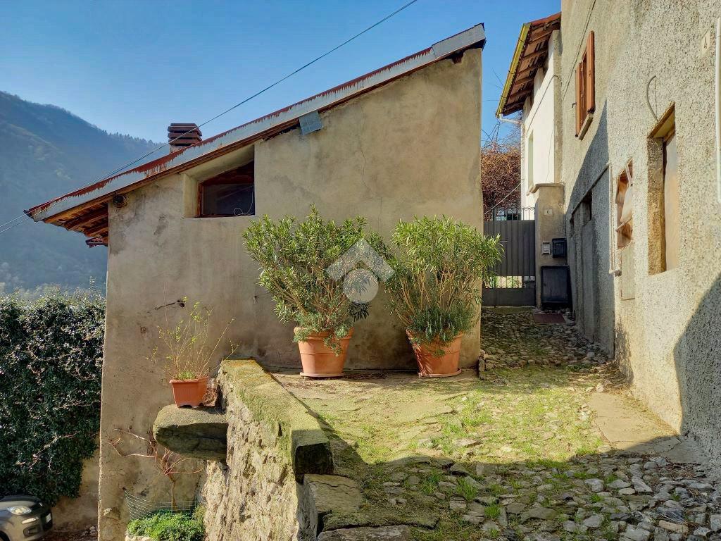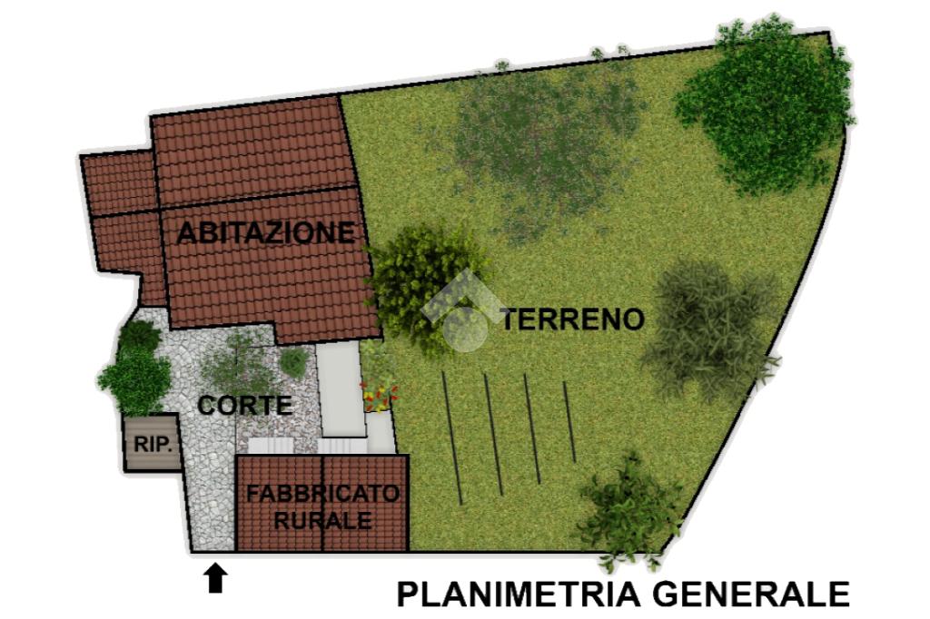 Raccolta su di una tipica corte con generosi alberi da frutto al centro, si compone di un immobile residenziale su due livelli con annessi solaio ed accessori, un antistante porzione di fabbricato rurale, ulteriori vani di servizio affacciati sul cortile ed un terreno piantumato, in parte terrazzato, che si sviluppa a monte della proprietà.